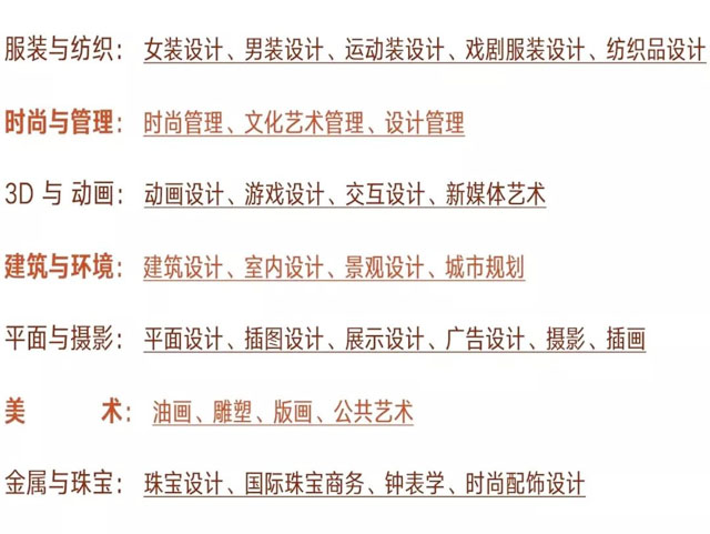 北京服装学院面向全国及港澳台侨学生,招收如下专业:
